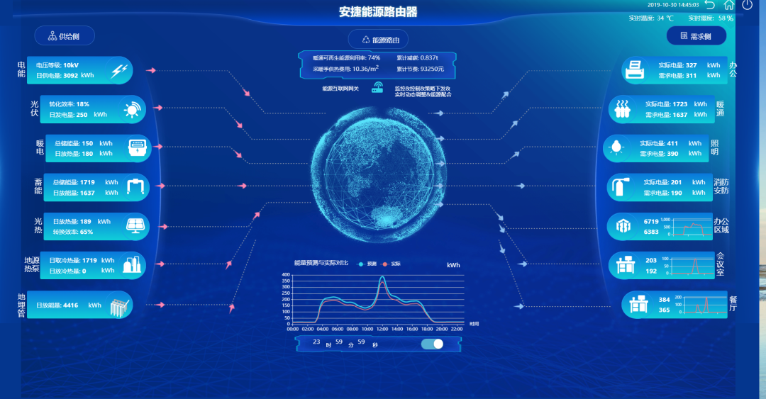 建筑物是全球最大的能源消耗端,目前,我国存在楼宇智能化程度低、能源管理粗放等问题,存在着巨大的节能空间。为此,若想提高能源利用效率,就必须精确的感知建筑物的状态,精准的预测能源供给和消耗,并且精细的调控不同类型的能源。