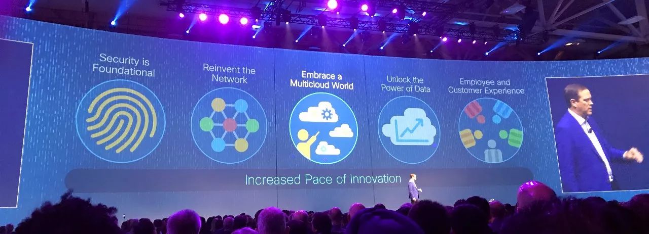 本届大会的主题是“OWN IT”,中文翻译为“全心全责”。着重探讨了如何建设一个“新网络”去支持云服务、数据分析、VR/AR、人工智能等新兴应用流行,并探讨由此给大家带来的新机会。